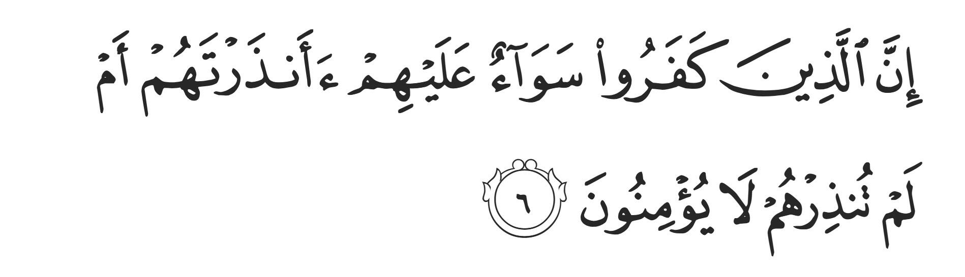 2:6. Verily, those who disbelieve, it is the same to them whether you warn them or do not warn them, they will not believe.