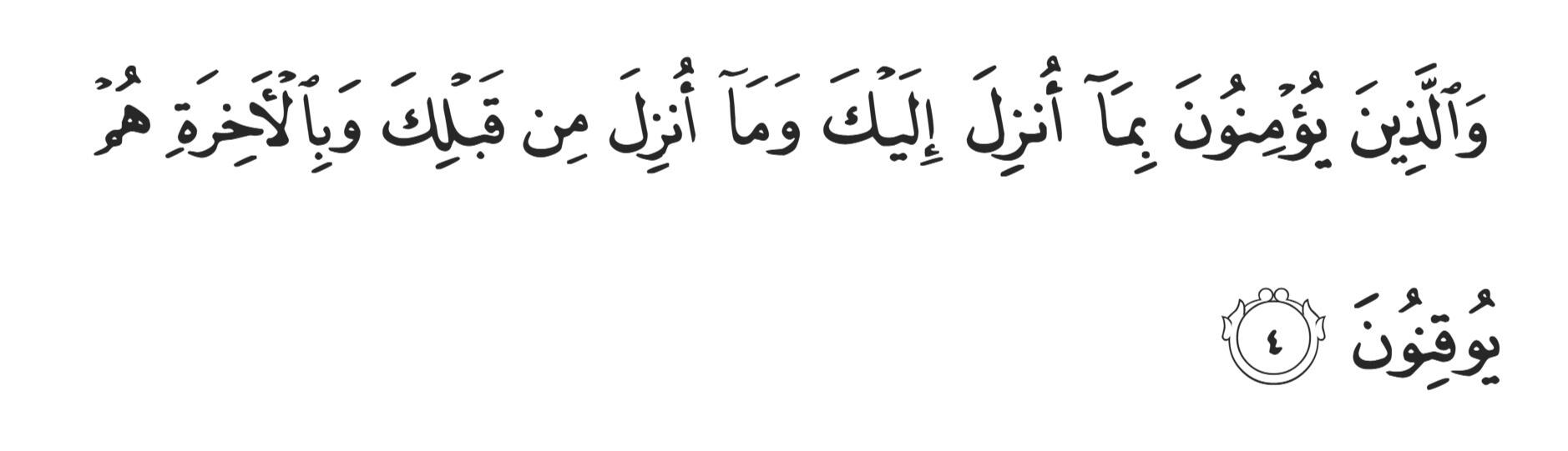 2:4. And who have faith in what is revealed to you and in what was revealed before you, and in the Hereafter they are certain.