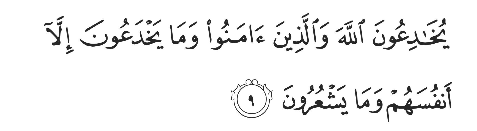 2:9. They try to deceive Allah and those who believe, while they only deceive themselves, and perceive (it) not!